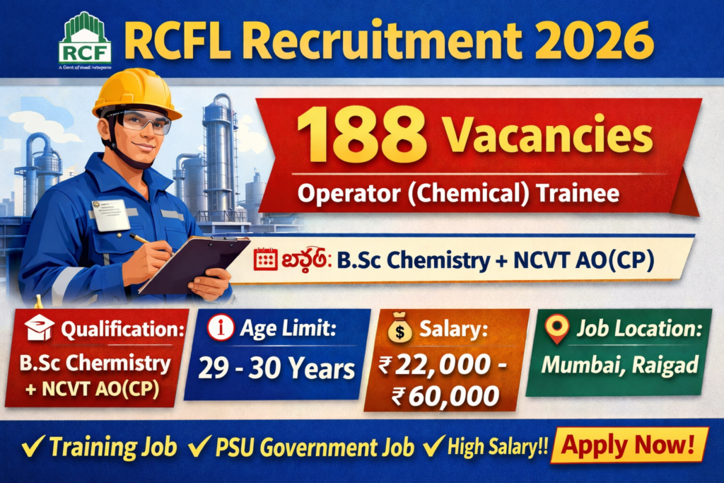 RCFL Recruitment 2026 Telugu, RCFL Jobs 2026 Apply Online, BSc Chemistry Govt Jobs Telugu, PSU Jobs India 2026, Operator Chemical Trainee Jobs, Latest Govt Jobs Telugu
