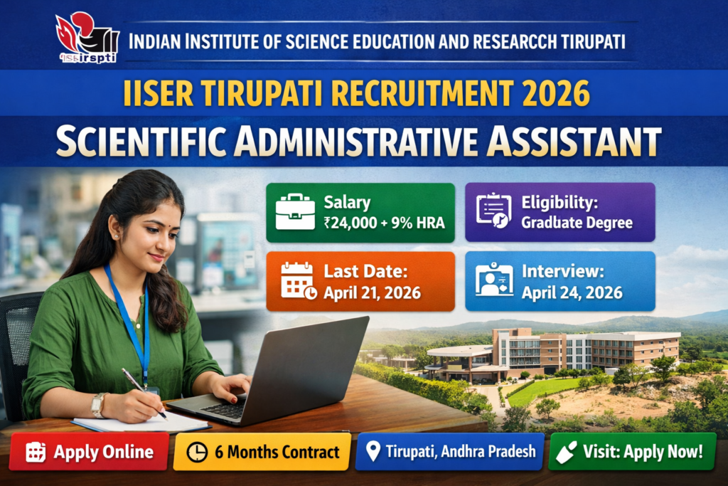 The Indian Institute of Science Education and Research Tirupati has officially released a new recruitment notification for the post of Scientific Administrative Assistant. This is a great opportunity for graduates looking to work in a prestigious research institution under a funded project.