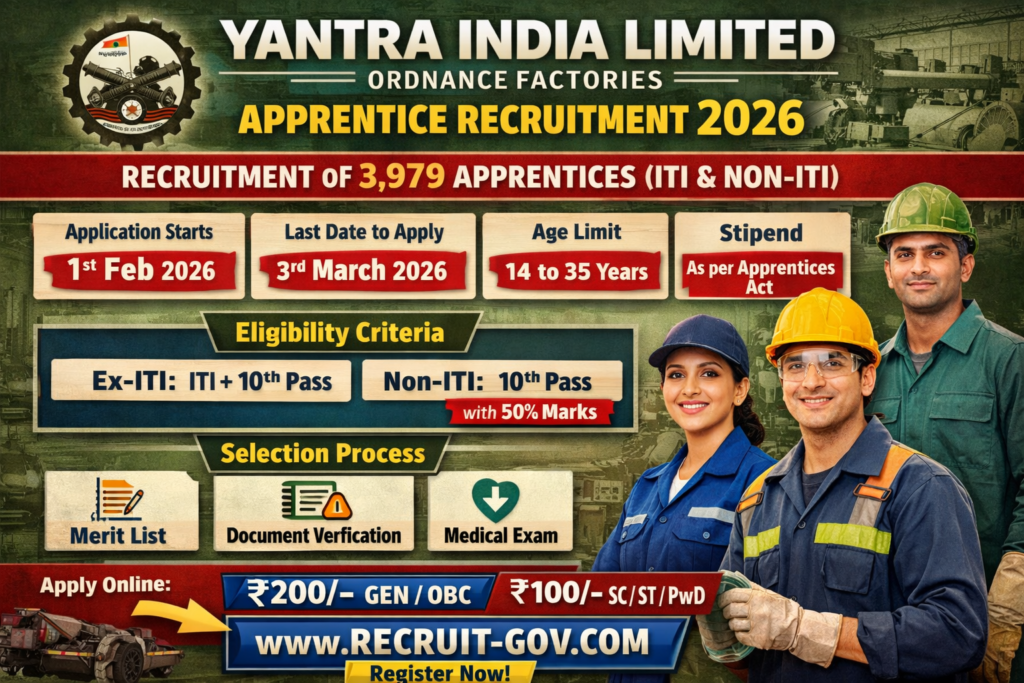 Ordnance Factory 3979 Apprentice Recruitment 2026- Yantra India Limited Apprentice Recruitment 2026